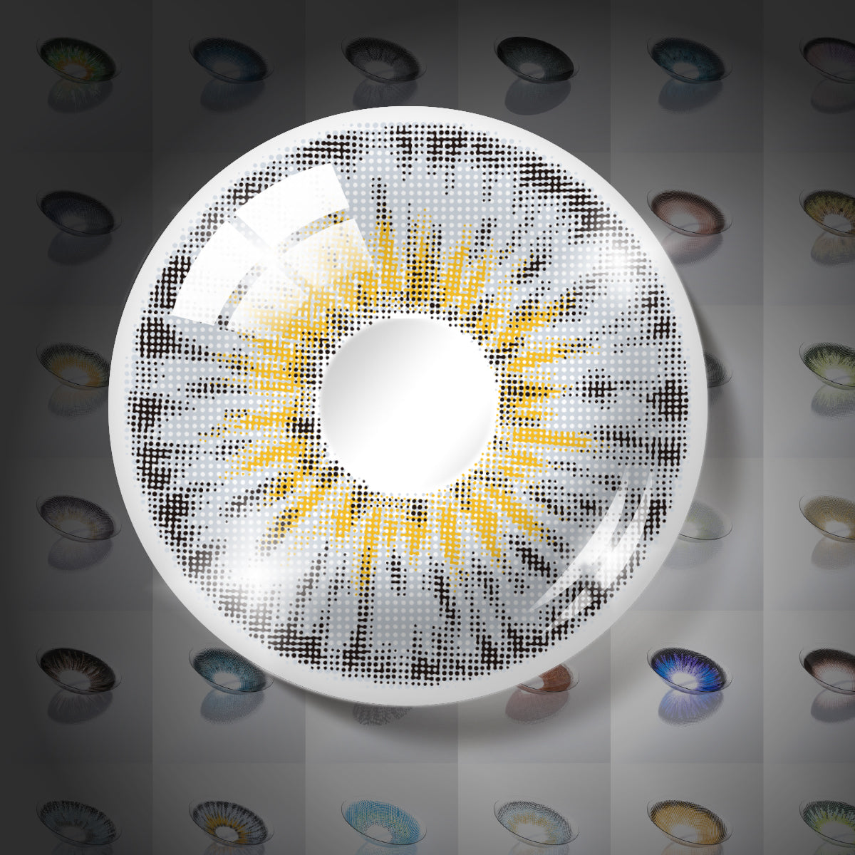 A warm-toned gray infused with subtle beige and champagne hues, creating a luminous yellow-gray effect. The color enhances eye depth with a soft glow, offering a bright yet natural mixed-eye look without appearing harsh. |